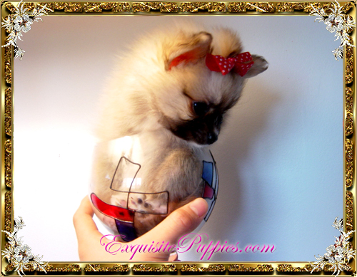 Princess Milan Is a rare sable Siamese color super tiny tea cup micro pocket Pomeranian, she is 12 weeks old and only weight 9OZ and 3 inch Long. She is so tiny she can walk run through a chainlike fence. Outstanding show conformation, great point, baby doll teddy bear face, she is cute as a button, very classy little angel. $SPECIAL PRICE $3500 /Sold I am going to New York, My mommies is Pamela. A movie producer ALL PUPPIES COME WITH ONE YEAR HEALTH GUARANTEE. We have some of the world smallest puppies around. Come out and take a look for yourself. Prospect Kentucky Call or email serious inquired only www.exquisitepuppies.com 502-439.3862 Luci Cavalli